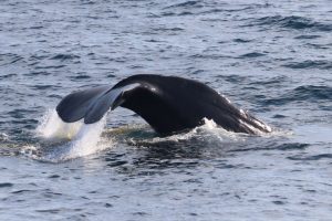 こうやって尾びれを上げて潜らないと、体の残りの3分の1を見ることが出来ません。